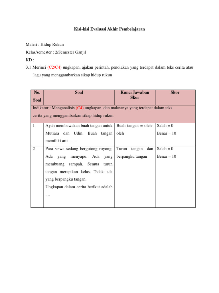 • Kejelasan Soal: Soal harus ditulis dengan jelas, menggunakan bahasa yang mudah dipahami oleh anak kelas 3 SD.